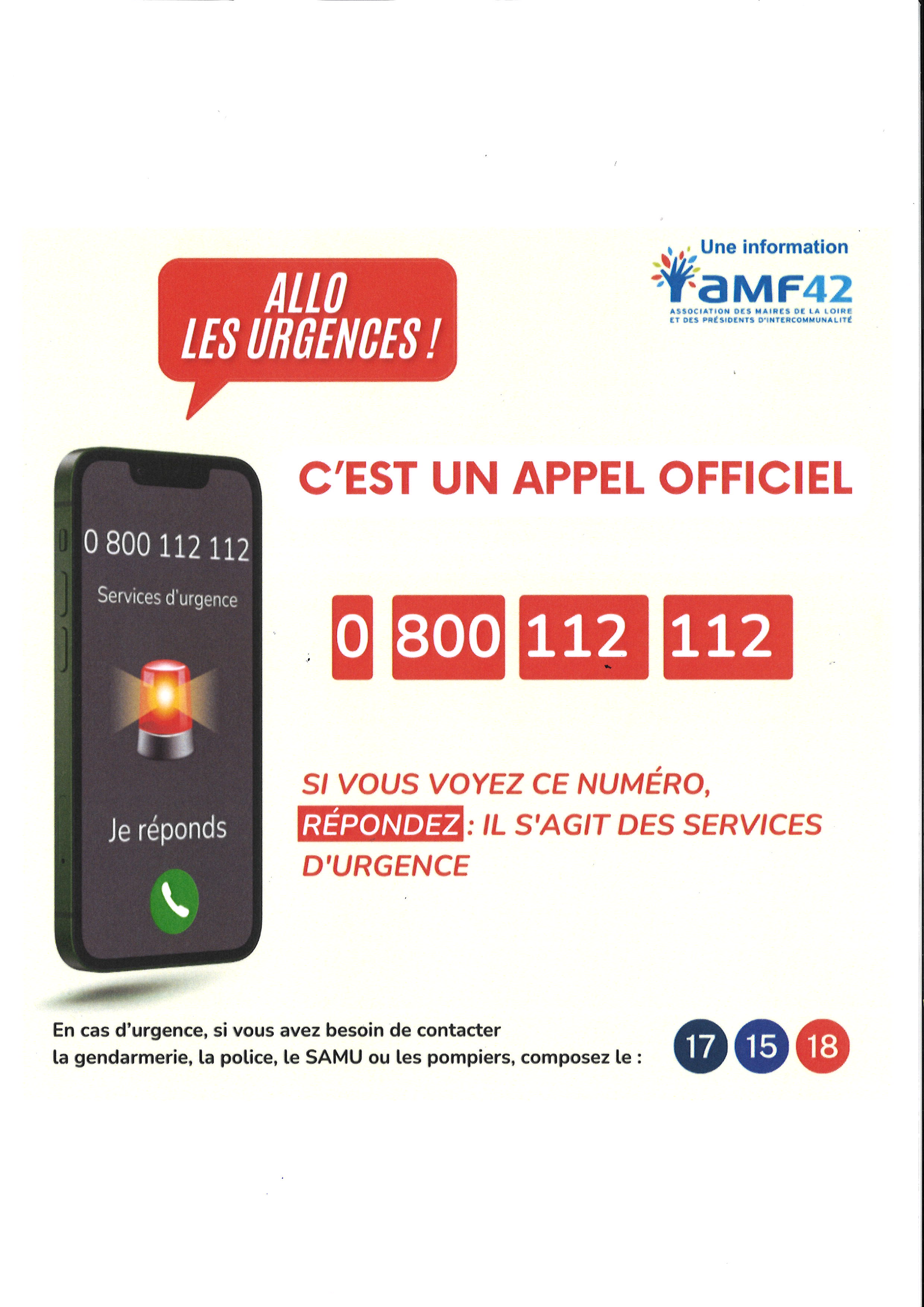 Rappel des N° d'urgences